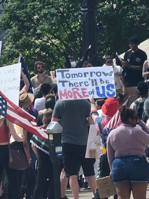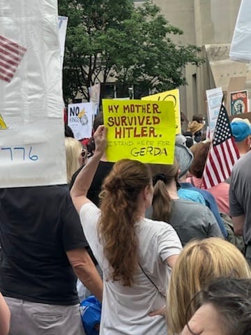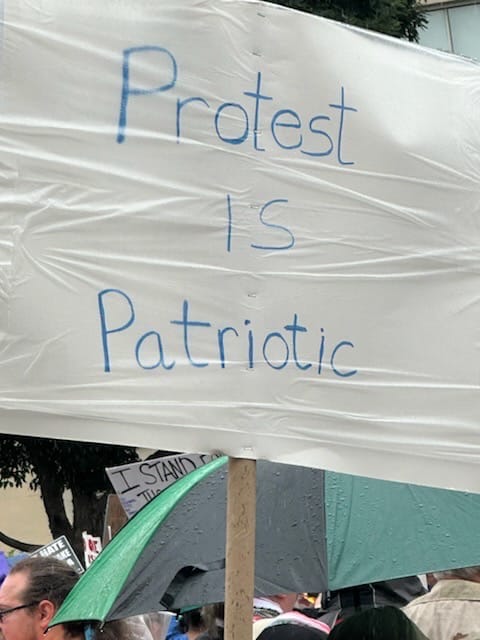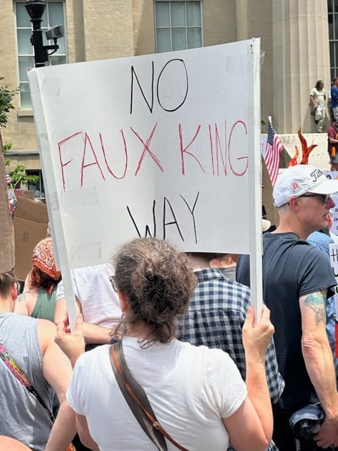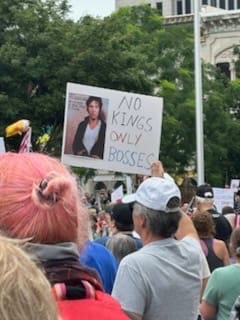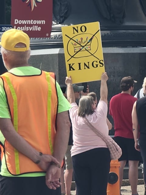 The “No Kings” Day protests were massive across the nation. In Louisville and across the river in New Albany, crowds swelled to impressive sizes as well. The demonstrations featured the usual selection of amusing signs and speakers. The “No Kings” protests were held to object to the Trump Administration’s harmful policies, including its immigration policies, which threaten families and children. The protests also wanted to deflect attention from the poorly attended military parade Trump held in Washington.