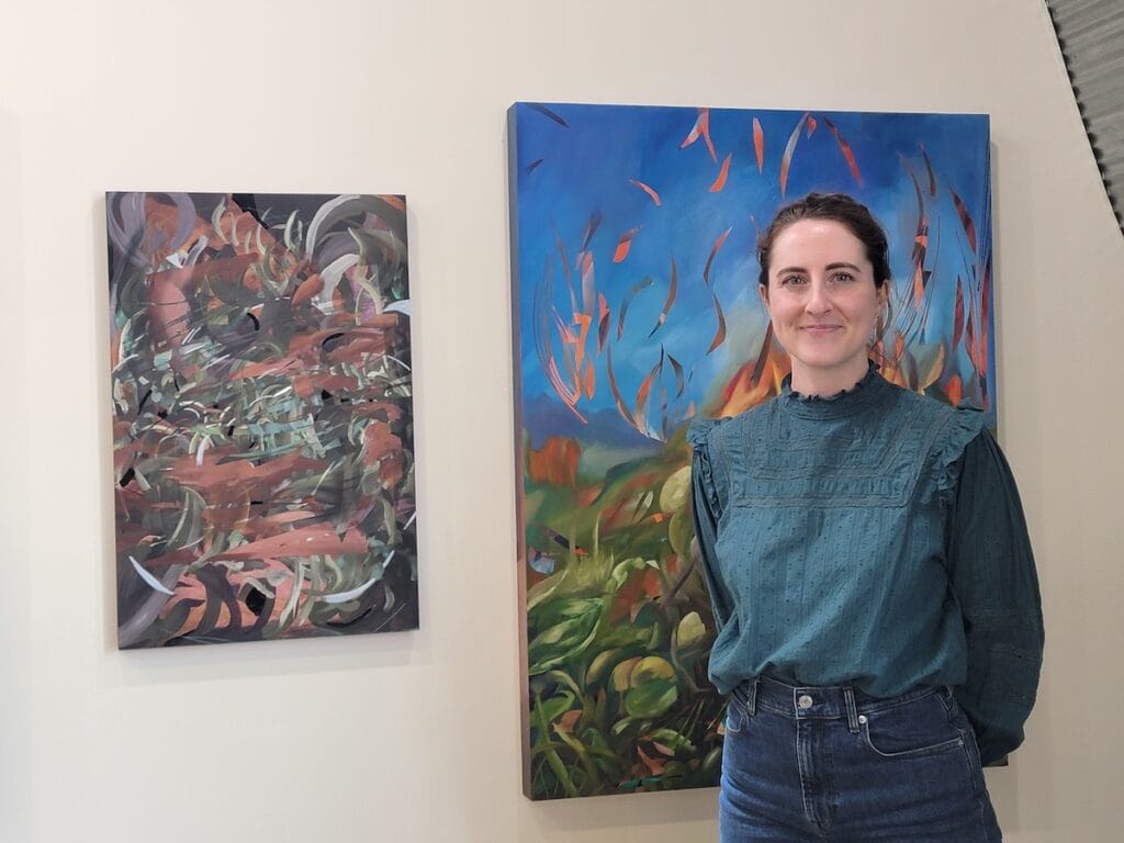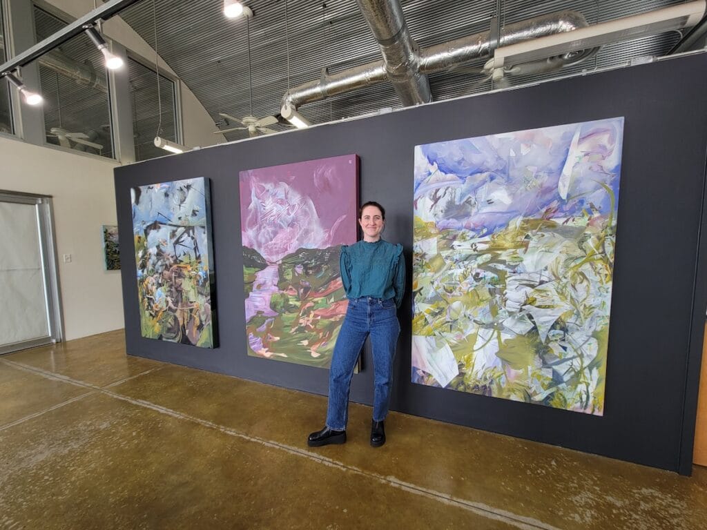 Something I think a lot about is, these are paintings which claim to demonstrate the changes in the landscape because of the climate crisis, but at the same time, that sort of addition and subtraction in the layers. It’s similar. It tracks with these. The addition of these into the world. Their creation is simultaneously an extraction of the natural resources it takes to make them. In some ways, they’re kind of hypocrites. It’s something that holds my interest quite a bit. It’s something I’ve been trying to deter. I’ve been trying to interrogate what it means to be a painter today, and what it means to be a landscape painter, an American landscape painter during the climate crisis.